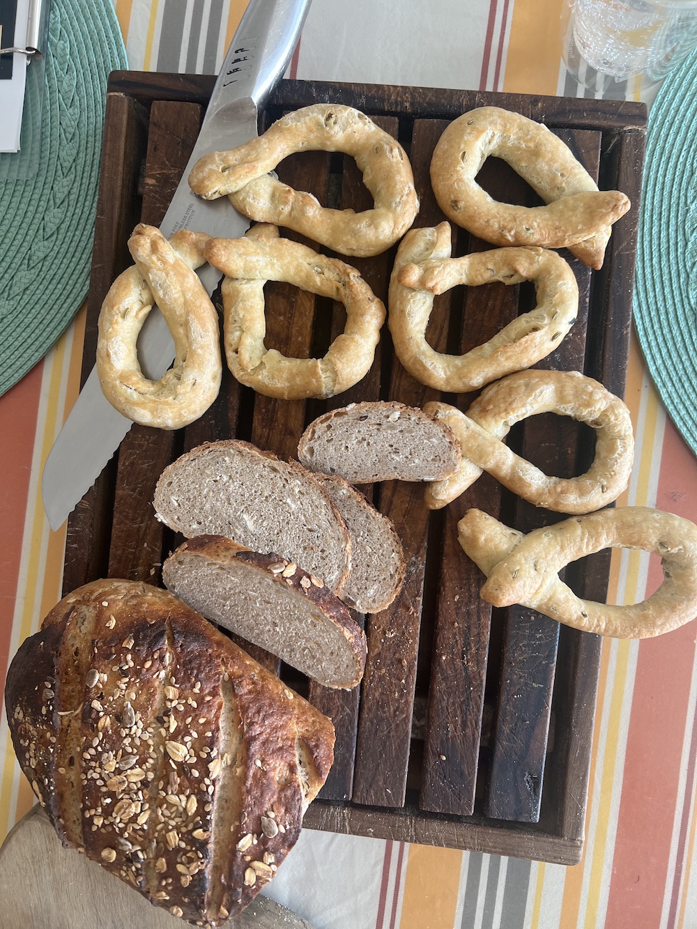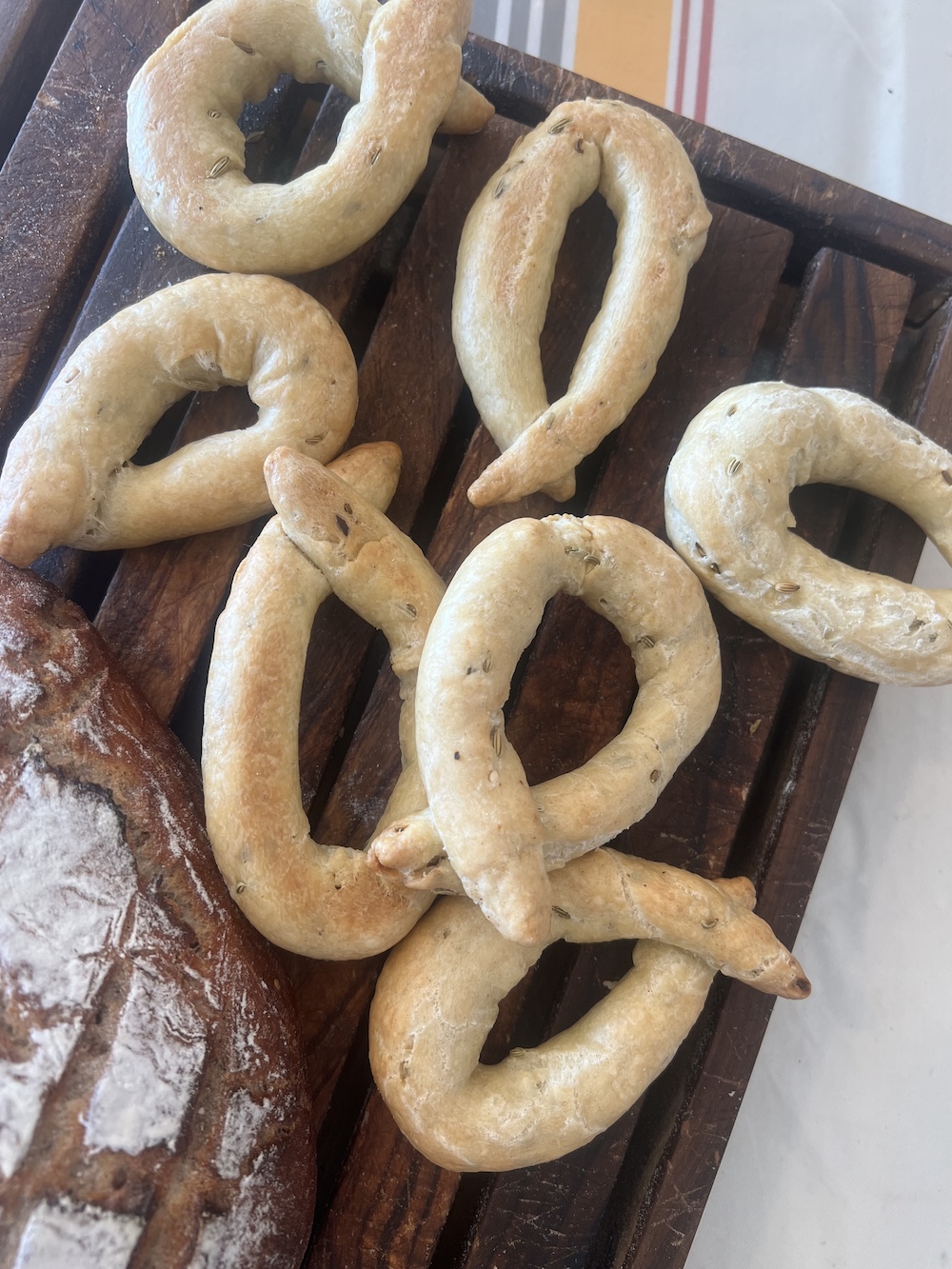 ドイツのライ麦パンと、プーリアのカルダステッレ。